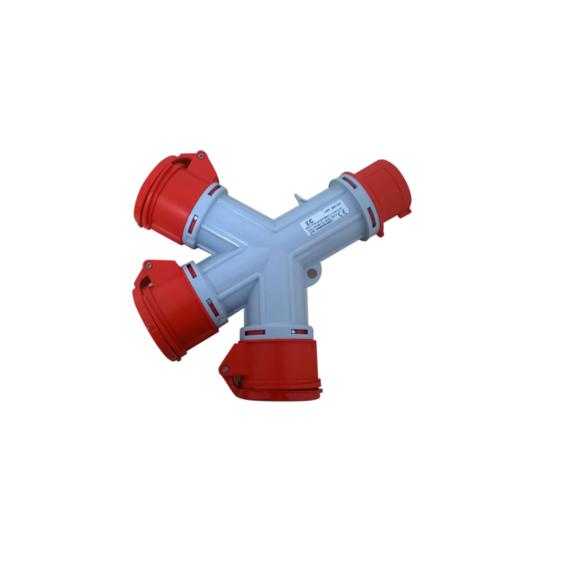 Power socket. 3-seater. 3P+E+N. 32A. 5 poles. 380V. IP44. red
