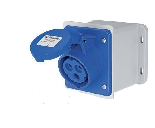 Power socket. surface mounting. V/A. 2P+E. 32A. 3 poles. 240V. IP67. blue