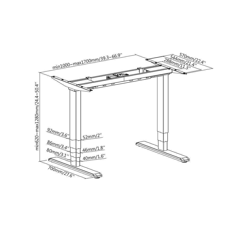 With this height-adjustable table frame you can easily convert your desk into an ergonomic stand/sit workstation. Save the cost
