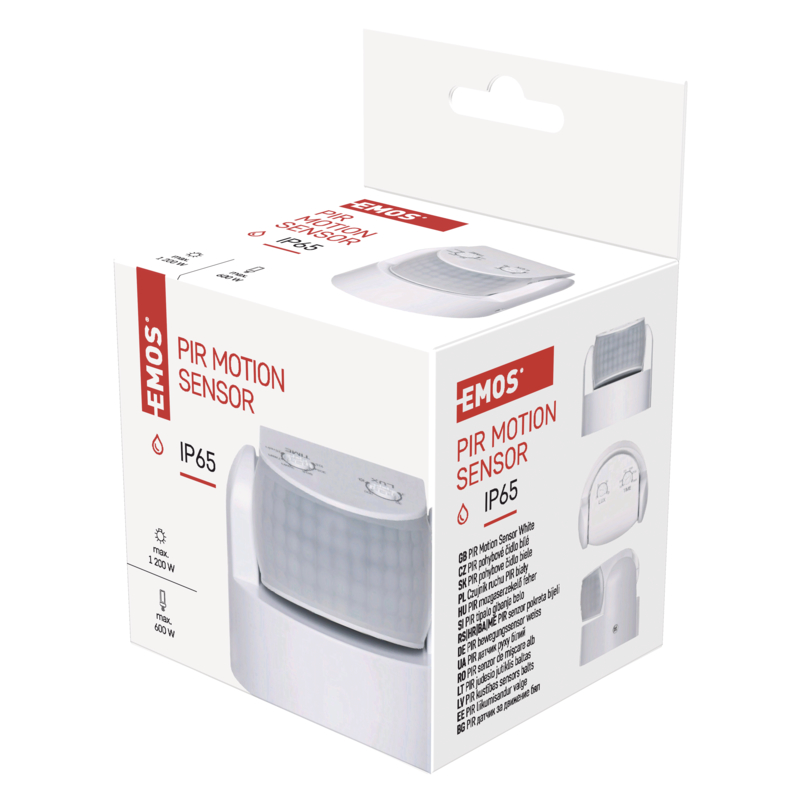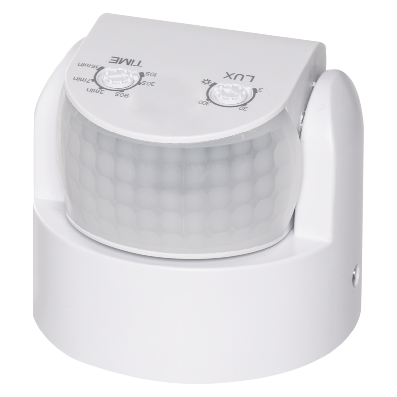 PIR motion sensor IP65 1200W white - detection distance 12 m - detection angle 180° - switching time min. 10 sekunds – max. 15 m