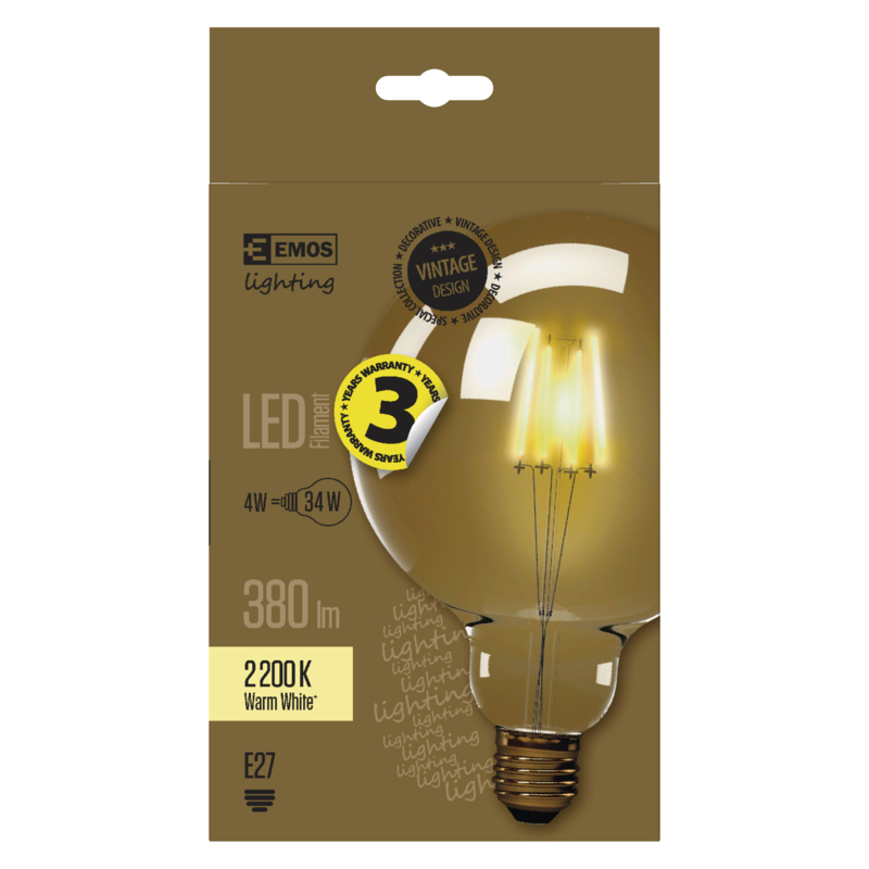 LED Bulb Vintage G125 4W E27 warm white+ - socket (bulb holder) E27 - light color warm white+ - replacement of incandescent bulb