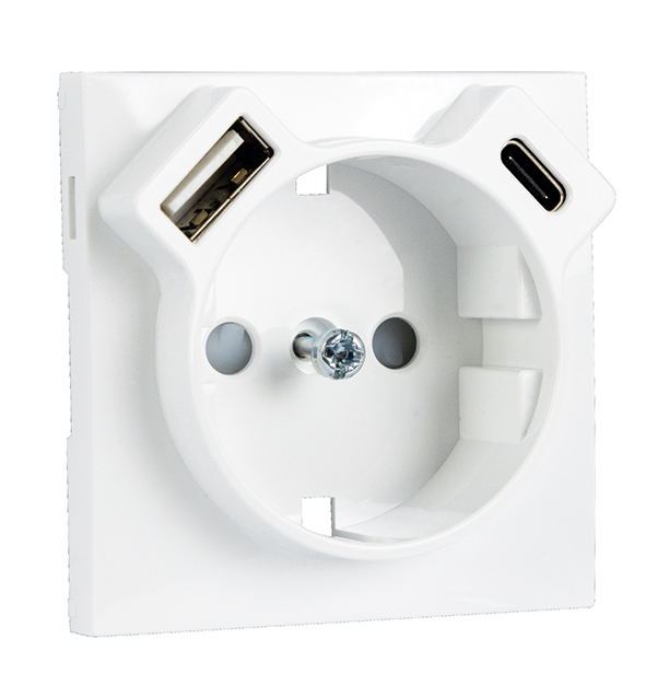Cover plate for earthed Schuko socket. with USB type A + C. Logus 90 series. aluminium color