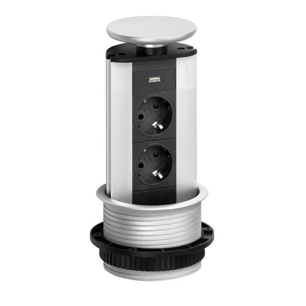 EVOline Port USB-CHARGER Aluminium housing. silver anodised. 2x sockets. VDE-compliant. 60°. 16A. contact-protected. 1x USB Typ