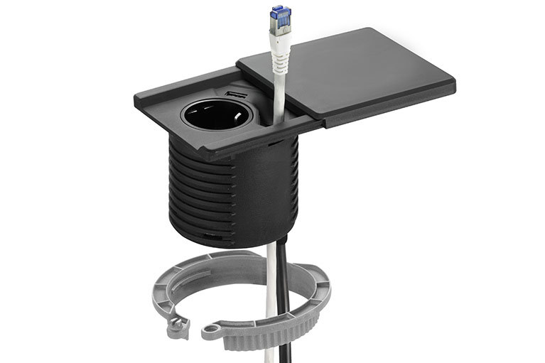 EVOline Square80 1x VDE-socket. 16 A. contact protected 1x USB Charger Type A. 5 V / 2.1 A Fixed supply cable 3 m with angled p