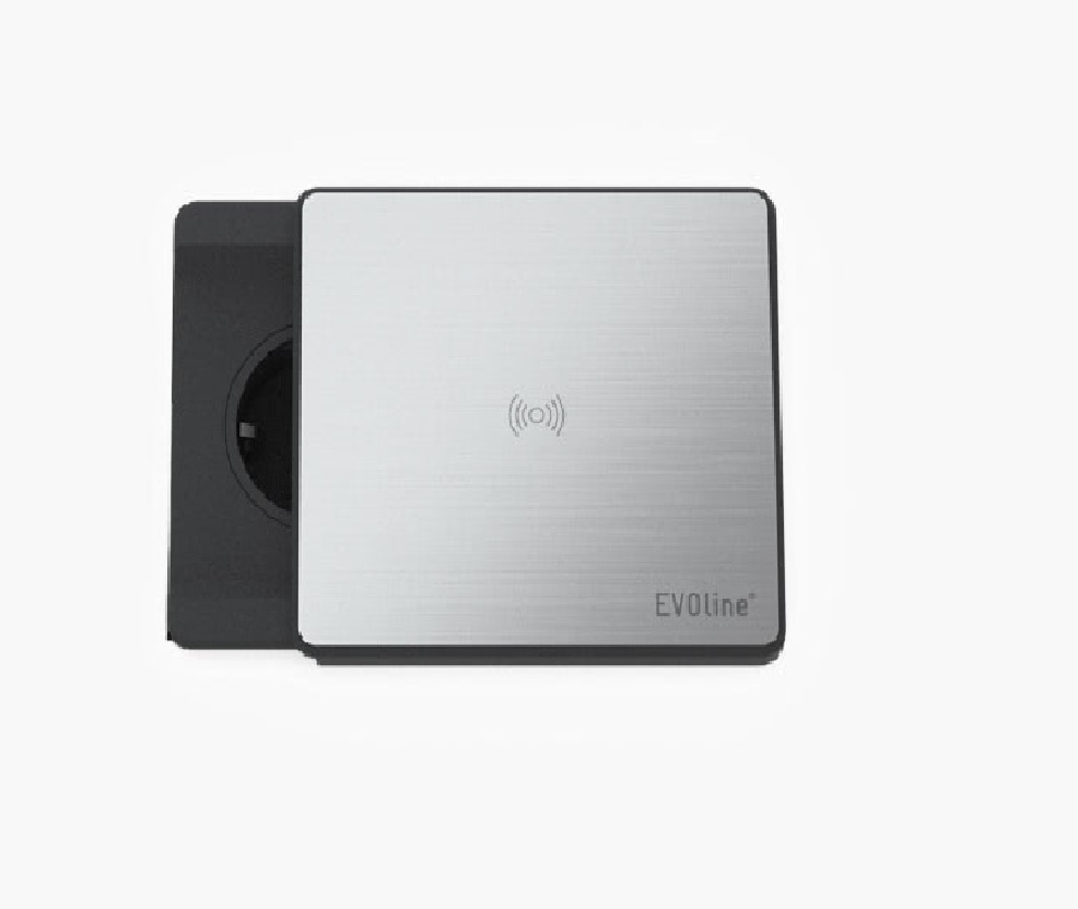 EVOline Square80 with Wireless Charger 1x VDE-socket. 16 A. contact protected 1x USB Charger Type A. 5 V / 2.1 A 1x Wireless C