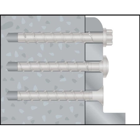 รายละเอียด The concrete screw BTS B 8-100/35 is optimally suitable for a wide variety of heavy-duty applications in cracked and non-cracked