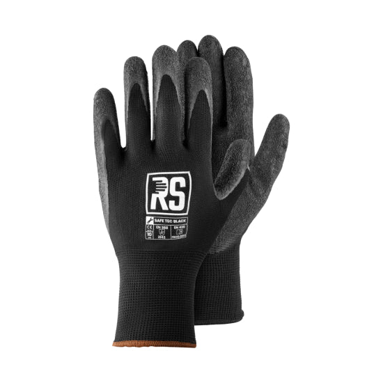 Nylon gloves coated with black latex. RS SAFE TEC BLACK. size 9