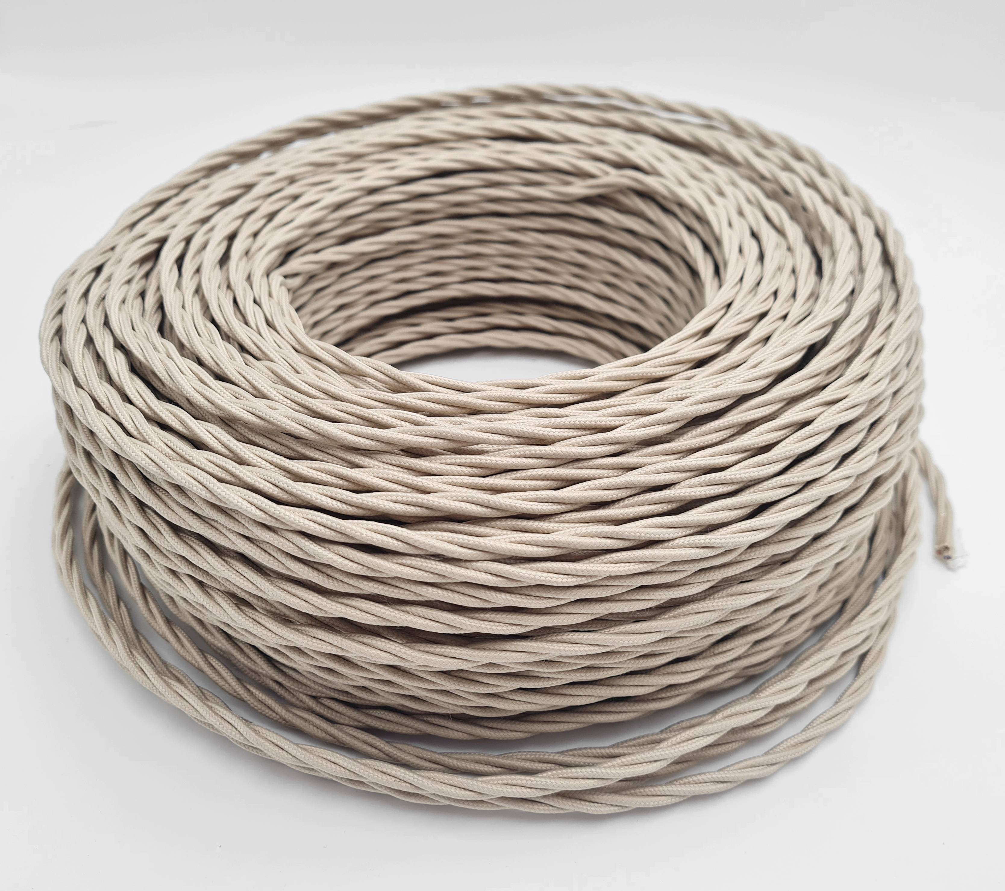 Twisted fabric retro cable. 2x0.75mm². matte beige