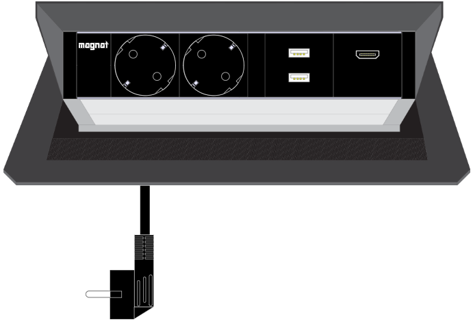 Built-in socket Magnat-Box. 2x 230V. 1x HDMI. 2x USB A 2.0. 3m cable. black
