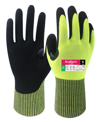 13 gauge cut protection level C/5 glove with durable and breathable nitrile coating. 11 size