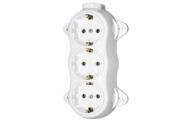 Triple socket. surface mounted. 16A - 250V. IP20. white