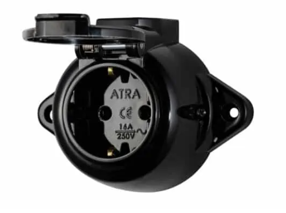Duriplast socket. earthed. with protection. 10A - 250V. black