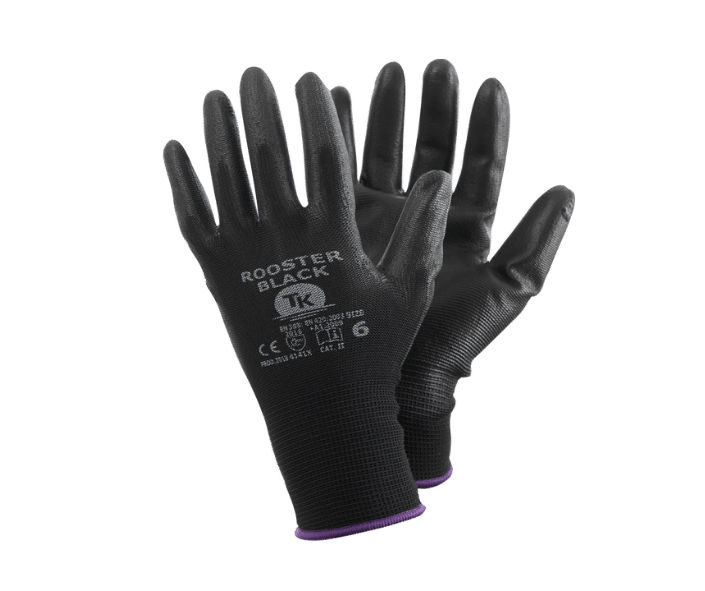 ROOSTER BLACK – safety glove coated with polyurethane. thin. flexible and hand-fitted polyester insert. coated with polyurethane