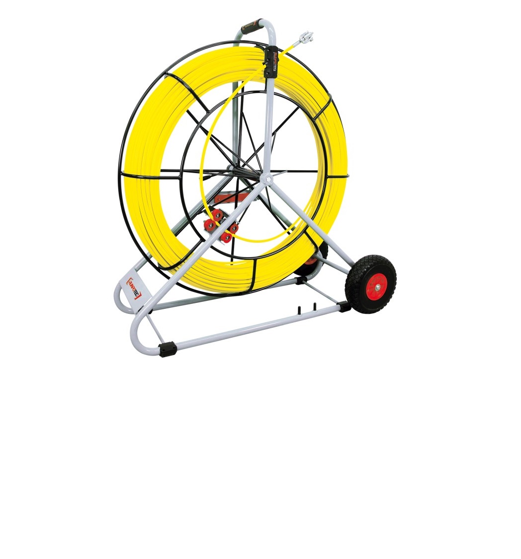 GF9 fiberglass rod Ø 9 mm with mobile steel reel incl. double run-out system. 100 m