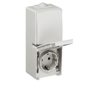 Switch + socket with earthing and protection. vertical. IP65. IK07. 16A-250V. White