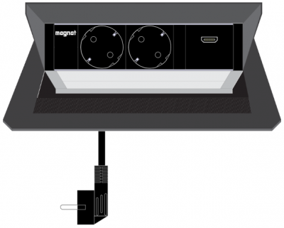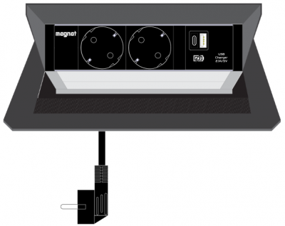 Built-in socket Magnat-Box. 2x 230V. 1x USB A+C 5V/2.1A. 3m cable. black