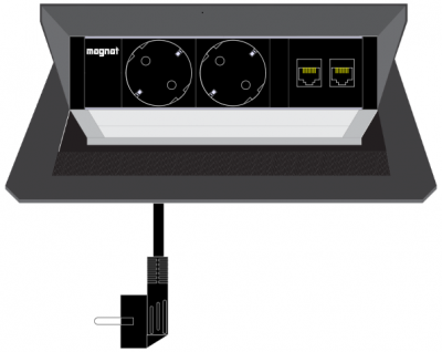 Built-in socket Magnat-Box. 2x 230V. 2x RJ45. 3m cable. black