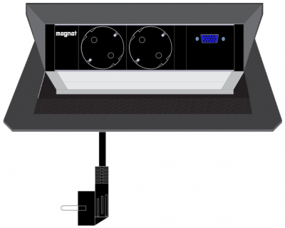 Built-in socket Magnat-Box. 3x 230V. 1x VGA. 3m cable. black