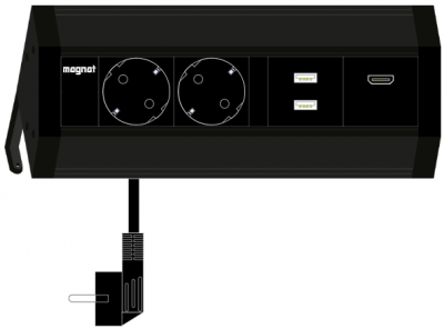 Socket Magnat-Stick. 2x 230V. 1x HDMI. 2x USB 2.0. black