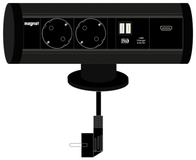 Socket Magnat-Tube. 2x 230V. 1x HDMI. 2x USB A 5V/2.1A. 3m cable. black